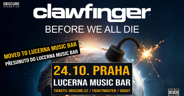 Dovolte nám, abychom Vám oznámili, že z důvodu velkého zájmu přesouváme koncert kapely Clawfinger z Paláce Akropolis do Lucerna Music Baru.