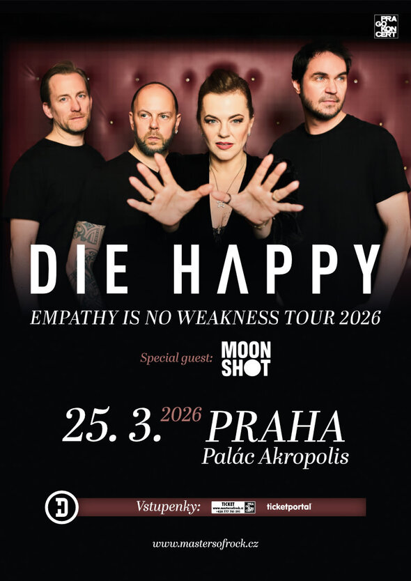 DIE HAPPY, Moon Shot – EMPATHY IS NO WEAKNESS 2026 Tour – 25. 3. 2026 – 19:00 – PRAHA, Palác Akropolis