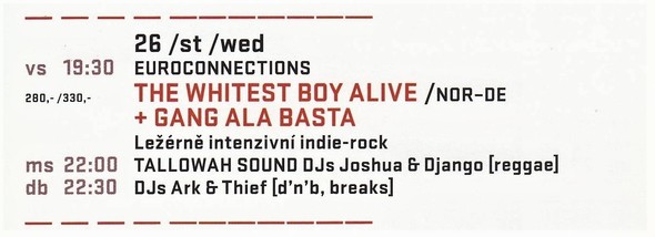 The Whitest Boy Alive /NODE + Gang Ala Basta /CZ