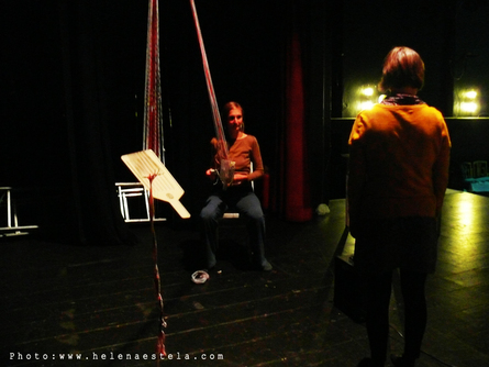 Výtvarné divadlo o zlomcích ženskosti konfrontující textilní umění, video, zpěv a loutkářské postupy: stopování obrazů před slovy, hlasů před písněmi, pohybů před tancem a doteků před setkáním.